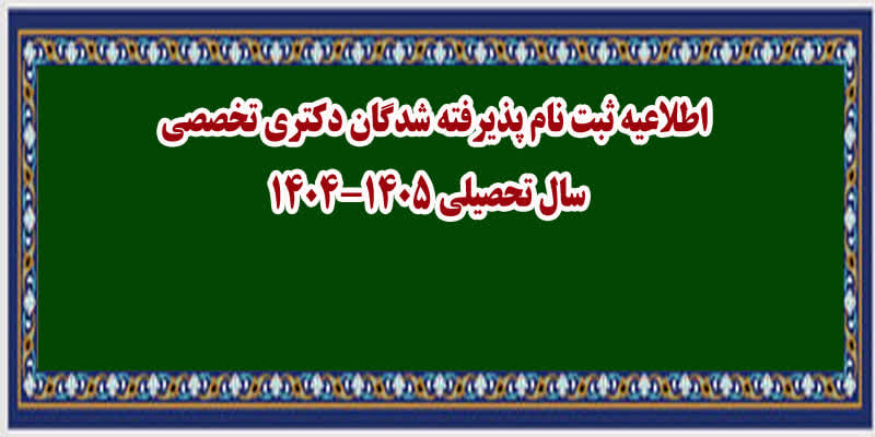 در این اطلاعیه آمده است: ضمن تبریک قبولی و آرزوی موفقیت برای کلیه پذیرفته شدگان گرامی، به اطلاع میرساند ثبت نام اولیه پذیرفتهشدگان دکتری تخصصی به صورت غیرحضوری (اینترنتی) و طی روزهای آینده انجام میشود.